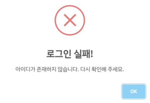 swal('로그인 실패!', "아이디와 비밀번호를 확인해 주세요", 'warning');
