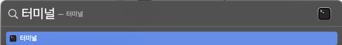 spotlight 검색 (command + space) - "터미널" 입력 후 엔터